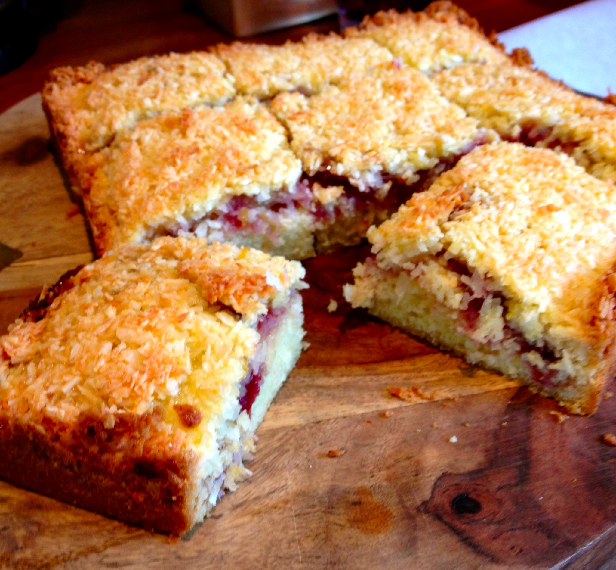 | A sneak peek at the Tray Bake Queen Raspberry and Coconut slice |